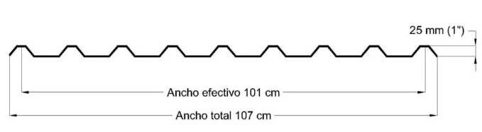 Es una lámina acanalada ideal para realizar tus proyectos gracias a su versatilidad, su capacidad estructural y de desagüe, su ancho efectivo es de 101 cm, a esto debemos su nombre como R-101, sin embargo algunas personas se refieren a ella como lámina pintro o lámina galvanizada, esto será de acuerdo al acabado que necesites (Galvanizada, Zincalum o Pintro).